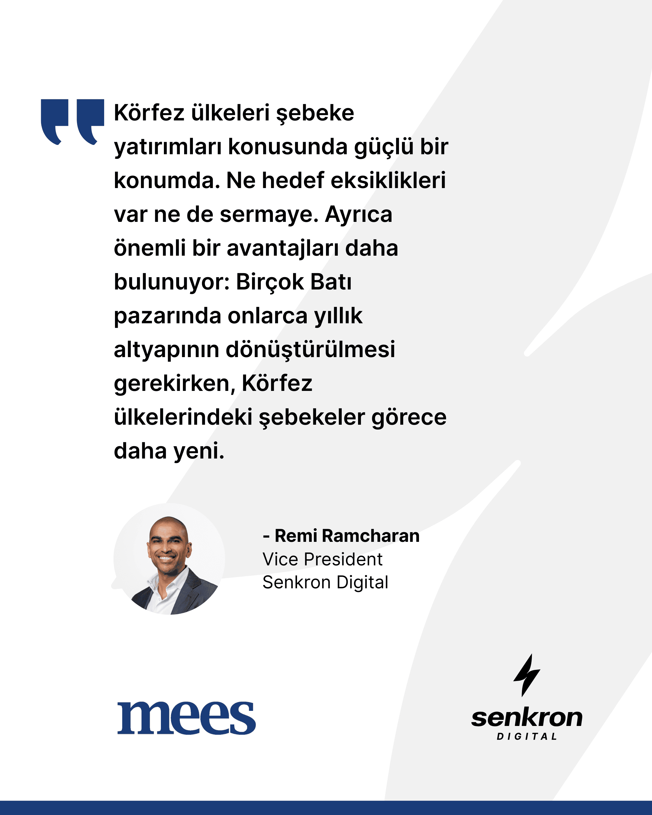 Vice President Remi Ramcharan, makalede yer alan değerlendirmelerinde Senkron Digital’in GCC bölgesindeki modern şebeke altyapısı konusundaki uzmanlığını bir kez daha vurguladı: